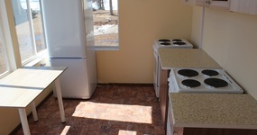 В корпусе восемь 2-х местных, два 4-х местных номера. Во всех номерах односпальные кровати. Общая веранда, 2 оборудованные кухонные зоны на корпус.