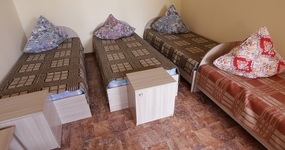 В корпусе два 5-ти местных номера. В номерах - односпальные кровати, стол, стулья, тумбочки.